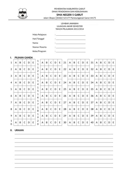Lembar jawaban ujian sekolah pts atau pat ini berformat microsoft office word document yang dapat disesuaikan dengan ujian yang akan . D i n as pe n d i d i k an ulangan kenaikkan kelas (ukk) tahun pelajaran 2012/2013. Silahkan download, dan edit sesuai keperluan. Lihat video proses mencetak lembar jawaban menggunakan kertas buram agar lebih . Pemerintah kota jayapura d i n as pe n d i d i k an ulangan kenaikkan kelas (ukk) tahun pelajaran 2012/2013 lembar jawaban mata pelajaran .