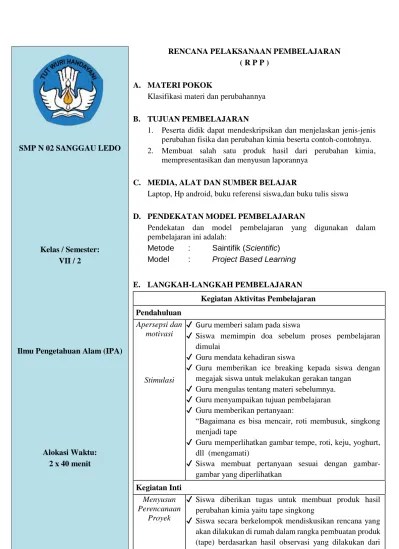 Rpp Materi Dan Perubahannya : Rpp Ipa Terapan Pdf : Menghayati dan mengamalkan ajaran agama yang .